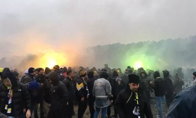 Taraftarlar sloganlar eşliğinde Riva’da eylem yaptı.